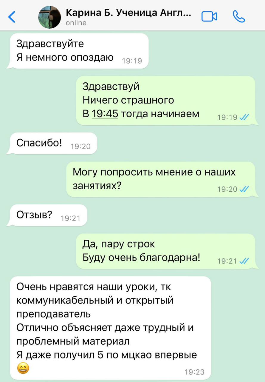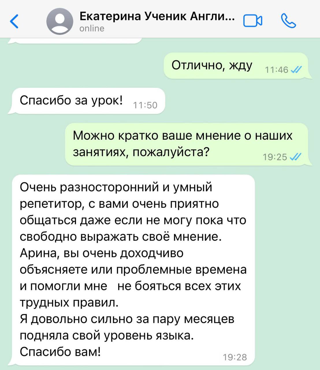 ✓ 10+ лет опыта обучения английскому индивидуально и в группах ✓ 20+ лет практики с иностранными партнерами и клиентами ✓ 3+ года преподавания в международной компании ✓ 100+ учеников различного уровня и возраста